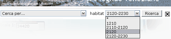 Attraverso il menù a tendina in alto a sinistra è possibile selezionare un attributo di un determinato livello sul quale effettuare una ricerca degli oggetti che hanno determinati valori dell'attributo. Una volta selezionato l'attributo, comparirà a destra del primo menù un altro campo per effettuare la ricerca tra valori che possono essere fissi (in questo caso compare una tendina dalla quale selezionare il valore) oppure liberi (es. toponimi - in questo caso sarà possibile immettere nella casella un valore qualsiasi). Premendo il tasto Ricerca verranno trovati e selezionati tutti gli oggetti che contengono il valore cercato. Gli attributi sui quali è possibile fare una ricerca sono prestabiliti per ogni mappa presente nel SIL.
