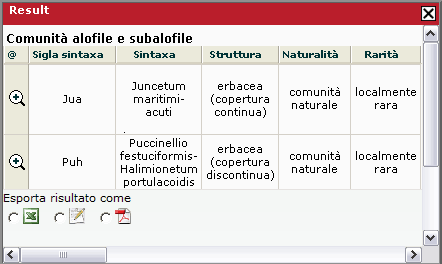 - visualizzare o spegnere i diversi livelli o i gruppi di livelli contenuti nella mappa, cliccando il pulsante ; quando il livello o il gruppo di livelli è visibile nella mappa il pulsante avrà un segno verde: